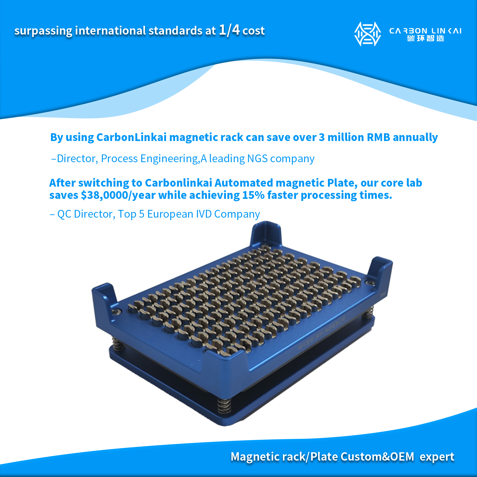 Magnetic rack/Plate customization expert Carbonlinkai| ✅China Magnetic rack/plate Sales Champion ✅50 units supports ODM/OEM ✅common choice of global life science leading enterprises ✅serving leading enterprises in 12 countries worldwide ✅surpassing international standards at 1/4 cost